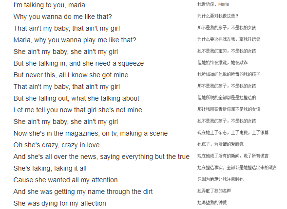 事后比伯还写了一首叫《Maria》的歌吐槽,歌词写得非常直白,“那不是我的孩子…为什么要这样戏弄我”?