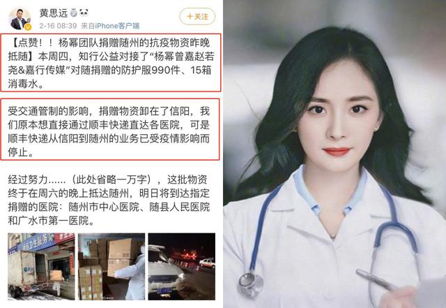 近日,频频在社交网站发文关注疫情的杨幂,因为团队已经低调默默第四次捐物资引来网友的热议,除了捐款捐物,这次也辗转多地才将最新的九百多件防护服和十几箱消毒水的物资抵达随