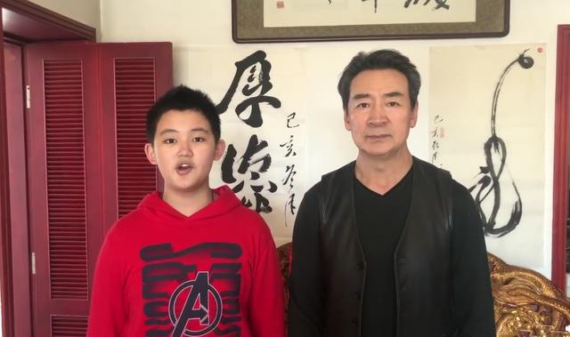 寇振海儿子普通话很标准,首先感谢了身在一线的医护人员的叔叔阿姨,随后寇振海让大家少出门注意安全,最后两人一起为祖国加油,神情非常严肃。