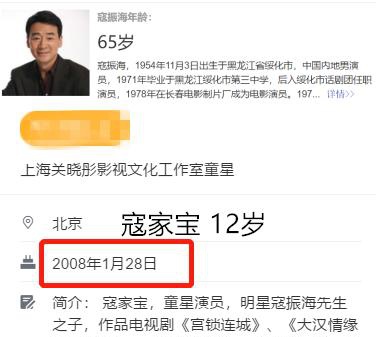 关于寇振海的儿子,我们也会下意识和他剧中的孩子“依萍”“尓豪”等人比,殊不知,现实中已然65岁的寇振海,现在儿子还未成年,上个月月底才刚刚过了他12岁生日。