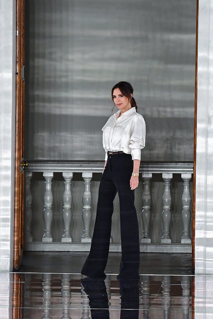 贝嫂维多利亚的造型简单大气,白衣黑裤,气场real强大。