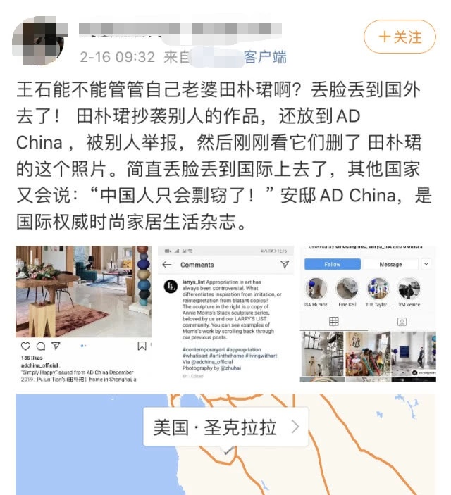 不过,也有网友觉得田朴珺虽然“参考“了艺术家的创意,但她并没有用于商业用途,只是放在家中自己欣赏,这样的行为并不算很过分。