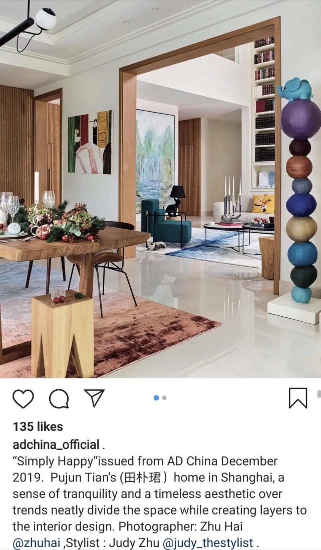 田朴珺的家打造得奢华又有艺术气息,家居照片登上了国际权威时尚家居杂志的官方社交平台,也因此被别人认出该艺术品并举报。