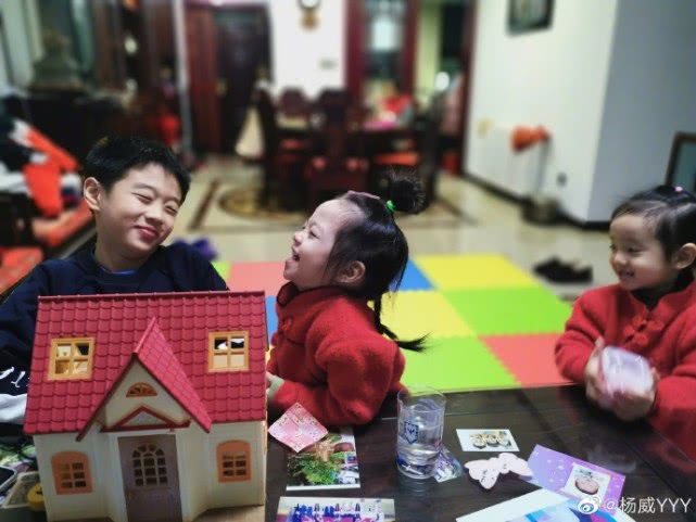 两个妹妹跟哥哥关系处得非常要好,杨阳洋本来就是小暖男,又是两个小公主的哥哥,自然是非常宠爱两个妹妹,这么有爱的家庭怎能不让人喜欢,两个双胞胎长得一个像爸爸,一个像妈妈,哥哥这么帅气,杨威杨云有福气之人啊,你说呢?