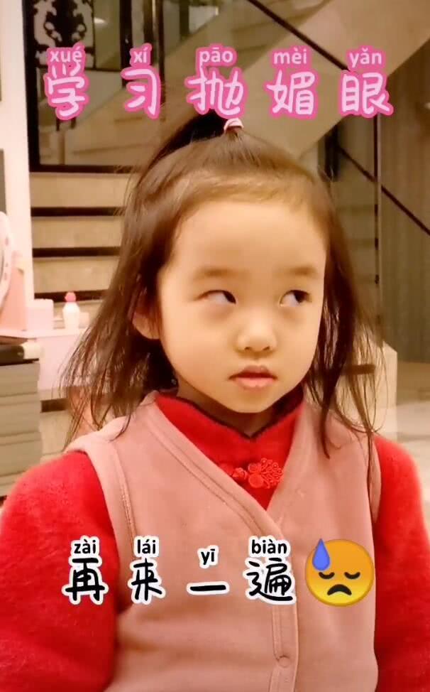今年的春节注定是个不平凡的春节,很多人都只能居家不能外出,明星们也不例外,他们也有了更多的时间跟孩子们相处在一起。2月16日,杨威在个人社交平台晒出了一条动态,杨云正在家里教两个女儿该怎么抛媚眼。先是欢欢开始学着抛媚眼,扎着高高的小辫子,披散着头发,穿着红色上衣搭配粉色马甲,这个小眼神儿亮了,明明就是翻白眼,哪是给人家抛媚眼。