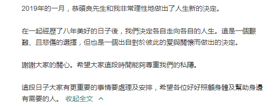 随后,林忆莲也发博对这段感情做了一个交代。因为感情走到了尽头,两人体面分开,平静又豁达。