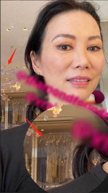 邓文迪的自拍还暴露了家中的豪华装潢,顶上的水晶灯十分绚丽,还有不少壁灯,光彩夺目,背景中的大衣柜就更是抢镜了,只见上边挂了一排的性感吊带裙,原来邓文迪私下里都是走熟女性感风啊!