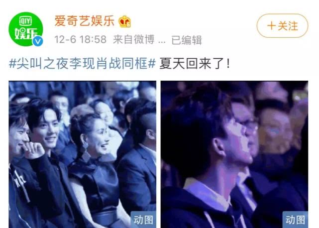 尖叫之夜李现和肖战同框,爱奇艺文案“夏天回来了”。