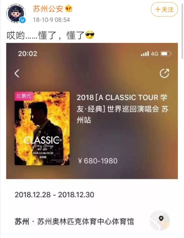 张学友演唱会开到苏州,粉丝还没怎么样,警方先忍不住躁动了。