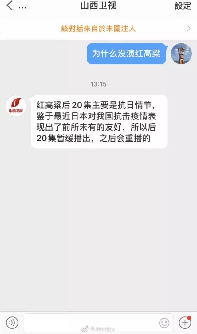 还看到了一个特别实诚的山西官博,有网友问为什么没播《红高粱》。