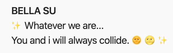 面对和高以翔的天人永隔,Bella始终保持低调,仅默默把IG自介栏的文字改成“Whatever we are。。。You and I will always collide。(无论如何,我和你终会相遇)”简短的一句话,道尽不舍与伤痛。