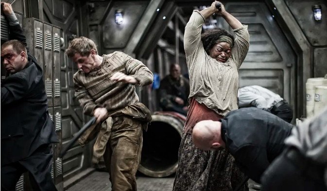 末世背景、科幻题材,这些《雪国列车》漫画原作里吸引人的要点,在影视化的过程中都会变成双刃剑,只要某一处的逻辑处理不好,就会毁掉整部影片,再加上电影由多个不同国家的人员参与,文化与语言的差异也增加了拍摄影片的难度……可即便如此,奉俊昊还是做到了。