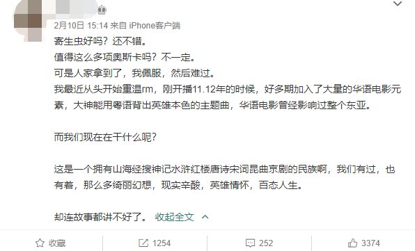 光是国内的声音就有许多种,有人因同为亚洲影人感到兴奋、表达羡慕,有人因为觉得它不如其他候选影片而嗔怪奖项结果,而更多的人则是怒国内影人不争,明明有着那样多的故事素材,怎么就拍不出这样的电影?