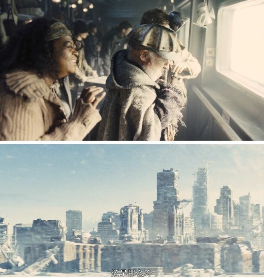 在士兵㕚的车厢,他们发现了窗户(最后一节车厢是没有窗户的),透过窗户,他们见到了久违的阳光与依旧被冰封的世界: