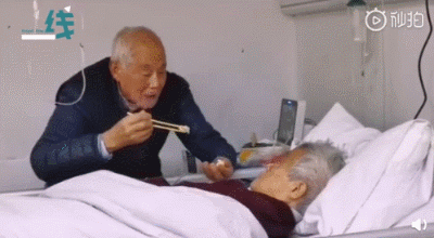 爷爷耐心地哄她,颤颤巍巍的喂饭。