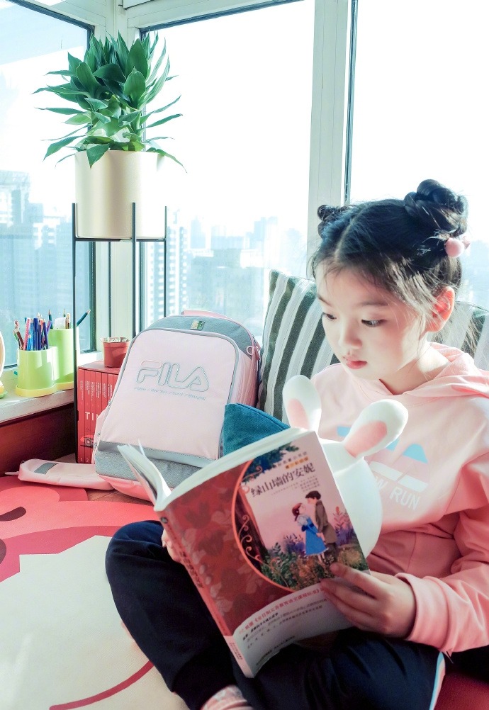 阿拉蕾在家认真看书,已经收拾好开学书包,学习、运动、跳舞生活超丰富。