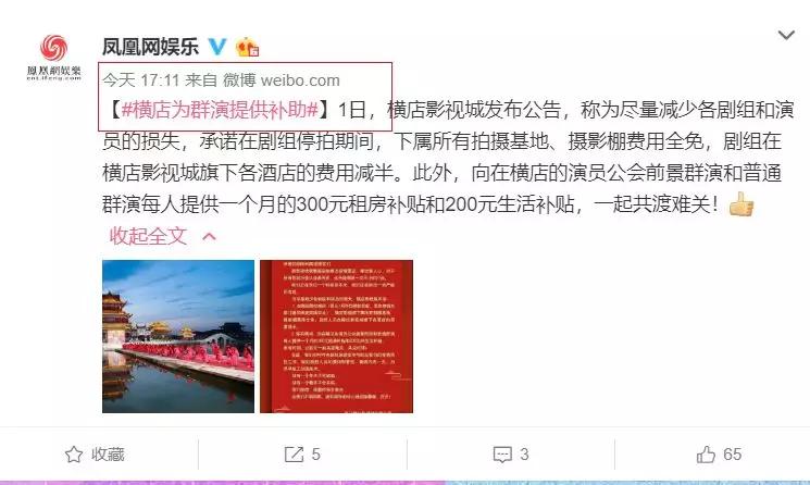 当时横店第一时间就出了声明,向群演与普通群演每人提供一个月300元租房补贴和200元生活补贴。