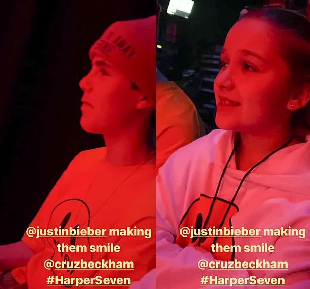 2月12日,据外媒报道,贝克汉姆带着三儿子克鲁兹和女儿小七去看了贾斯汀·比伯的演唱
