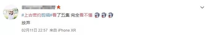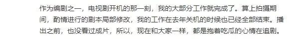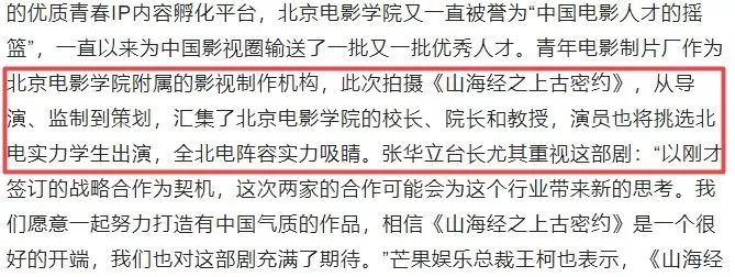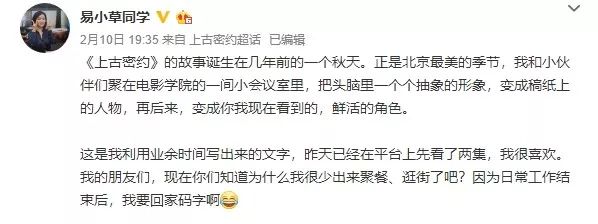 所以呢这是学生们为了挣取学分共同完成的一部作品,现在成品出来了,北电学生自己也会检查作业一番。《上古密约》的编剧之一,也是北电的学生,在开播时就说这是自己和小伙伴在北电写的剧本,在播出之前她也没看过成片,现在正在追剧。
