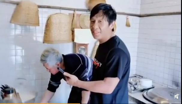 这次直播是在农家小院拍的,宋小宝一头短发造型,身穿一件黑色短袖出镜与大家问好互动,之后赵本山出现在画面中,只见他一头白发,身材微微发福,腰间系着一个黑色长围裙正打算生火做饭。