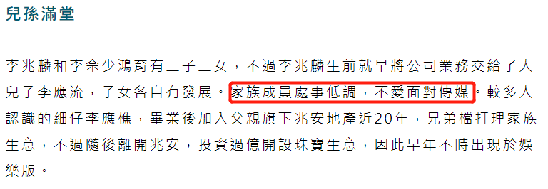 后来徐子接连生娃,又被曝出家庭成员拼生娃的动态,可以说李兆基也因此被不少人熟知。