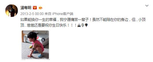 潘粤明自从与前妻离婚后每年儿子过生日的时候都会在线送祝福,内容从一开始的大段文字到如今简约的两个表情,字短情深。