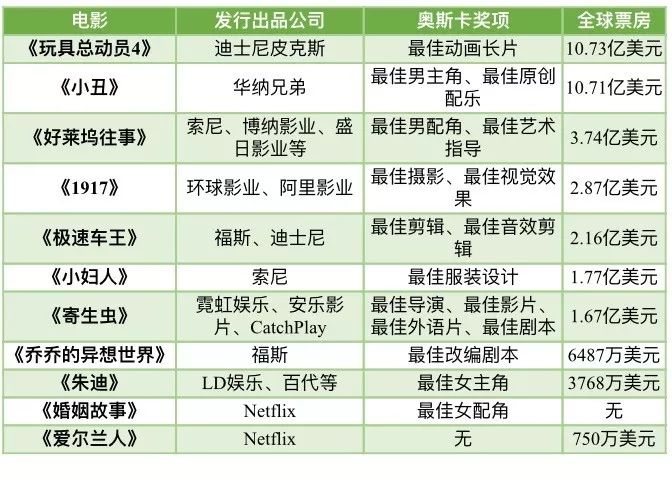 这个数字固然值得惊喜,只是放在好莱坞执掌的“奥斯卡系”阵营里,还有一些差距。 据媒体统计,今年奥斯卡获奖真人影片中,华纳兄弟的《小丑》以10.71亿美元的全国票房完成领跑。
