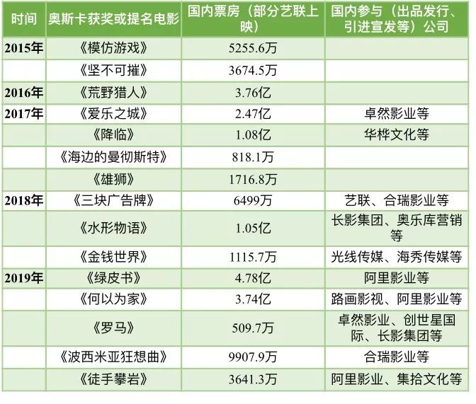 近5年,随着公众电影审美的提高,奥斯卡系电影在国内票房市场的收割能力已经越来越强。 这片红利区迅速被国内电影公司注意,国内电影公司们出现在奥斯卡电影的出品发行方的次数在无形中增加。