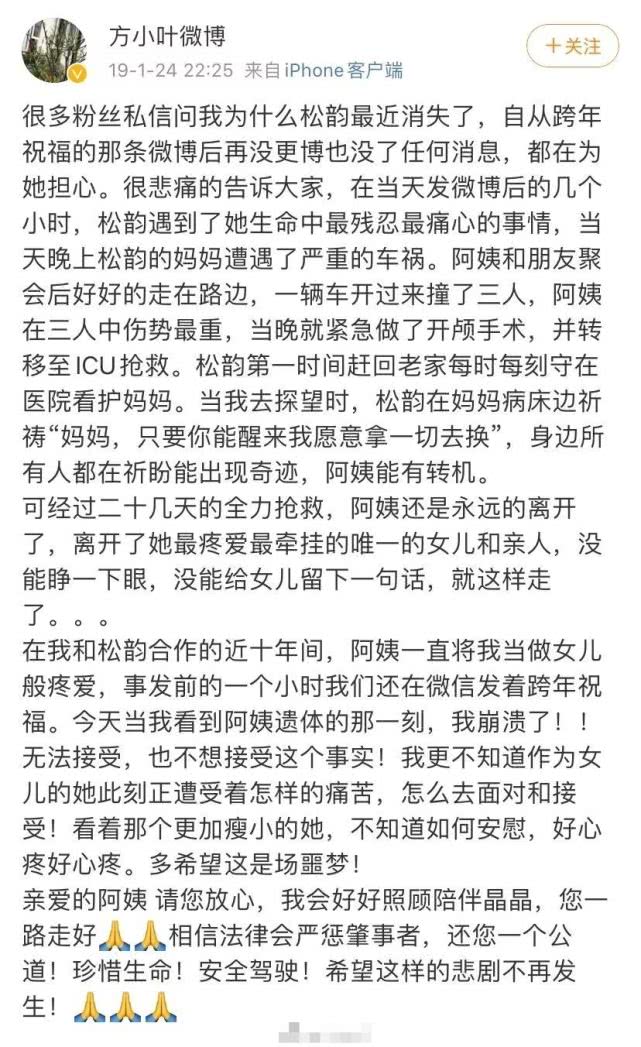 2019年的元旦,谭松韵的妈妈不幸遭遇车祸,最终去世。这对于谭松韵来说,无疑是最致命的打击。