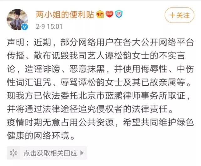 对此,谭松韵工作室终于忍不住了,发声明表示已经委托律师,将追究法律责任。