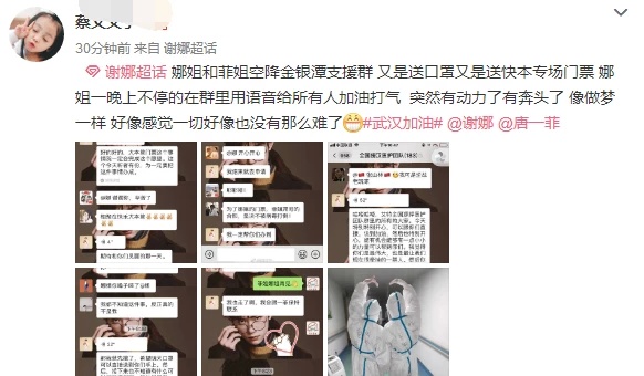11号晚上,据知情网友爆料,谢娜与唐一菲一起空降到了金银潭医院医护支援群,而且谢娜向大家捐赠了口罩,还送他们《快乐大本营》专场门票。