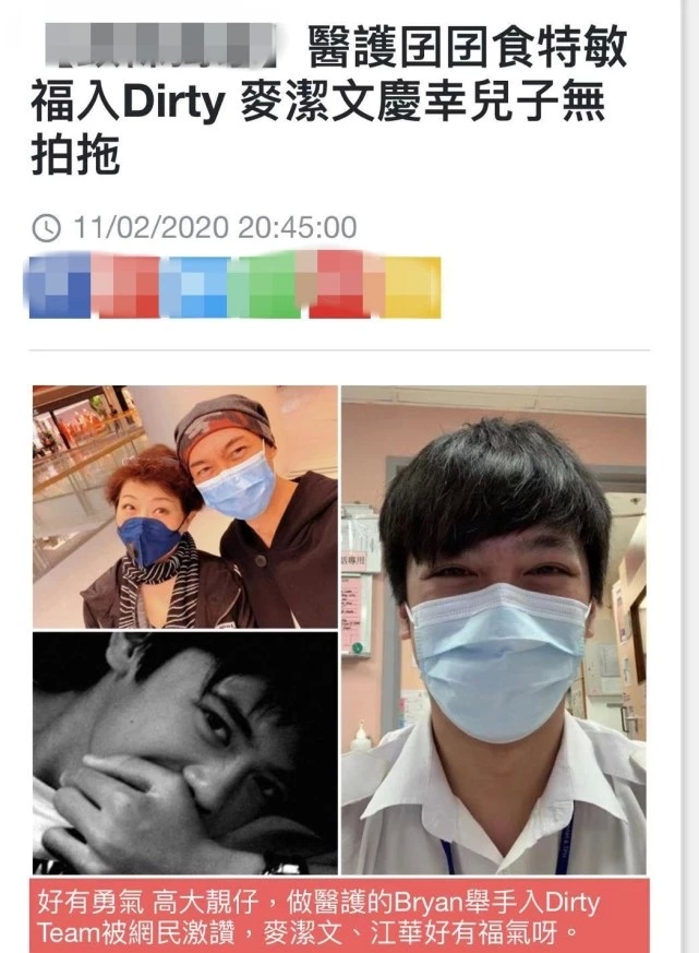 近日,新冠肺炎蔓延到香港,陈耀淙是大埔那打素医院的男护,因自愿加入“Dirty team(抗疫队伍)”备受网友赞赏,更大赞江华两夫妻很会教育子女。